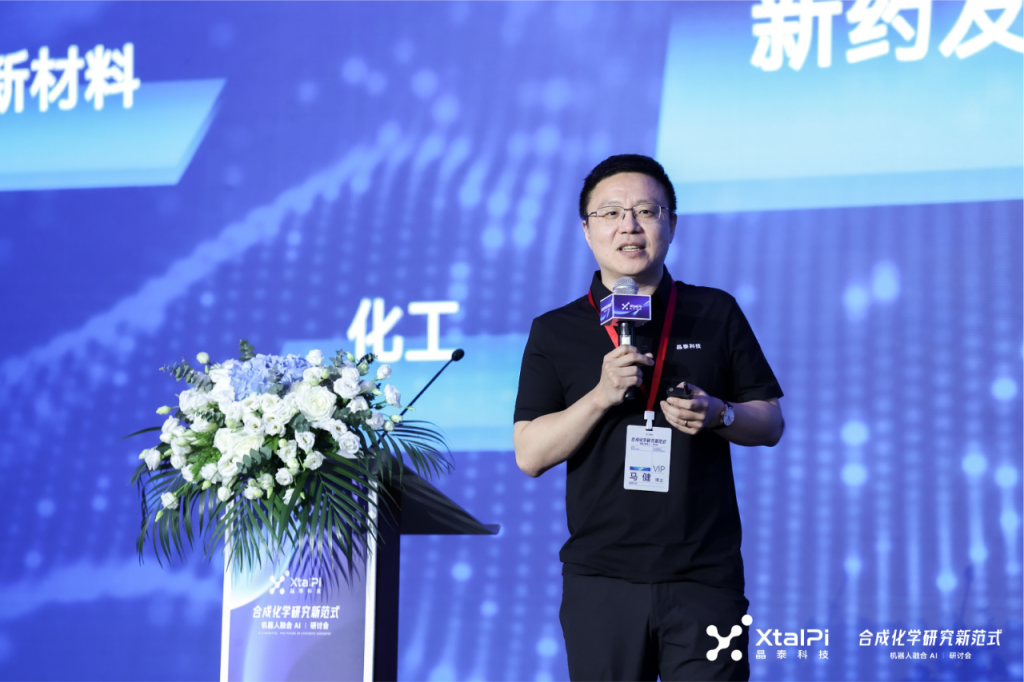 晶泰科技聯合創始人、首席執行官馬健博士發表主題演講《AI 化學,見微知著》。他提到,化學是一門連接微觀和宏觀的學科,從時間和空間兩個維度對社會產生影響。通過化學研究,人類得以做出更多新藥,生存時間得以延長;合成化學材料,材料亦或是能源,則讓我們走得更遠、走得更快。在回顧晶泰科技過去十年發展中他強調,公司通過晶體結構預測、藥物發現和機器人自動化實驗等領域的探索和產業化應用,拓展了其在 AI 驅動物質發現(AI4S)領域的應用場景和行業價值。并進一步介紹晶泰科技自主研發的智能自主實驗平臺結合自動化實驗執行和AI實驗預測與設計,更精確、更安全地做實驗,提升實驗預測的準確性、分子設計優化,從而顯著提高了新物質發現的效率。