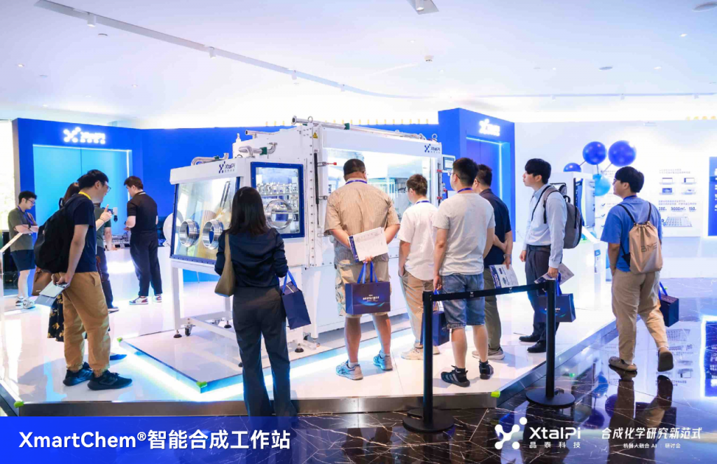 大會現場,晶泰科技自研的智能自主實驗平臺引起與會嘉賓關注,數臺應用于不同實驗工程的機器人合成工作站零距離呈現了 “機器人融合 AI ” 在多個研發場景應用的最新成果。該平臺以領域專有 AI 模型為核心,擔當 “大腦” 之責,專職實驗流程設計、反應預測等前期部署和過程推進;以自動化技術驅動機器人工作站為 “雙手”,實現高精度、高通量、更安全的化學操作。在此過程中,通過機器人收集的數據反哺 AI 模型,形成預測更準、設計更優的良性循環。這一新范式通過數據驅動的智能決策與高通量自動化操作,顯著提升化學空間探索效率,助力新物質快速發現。